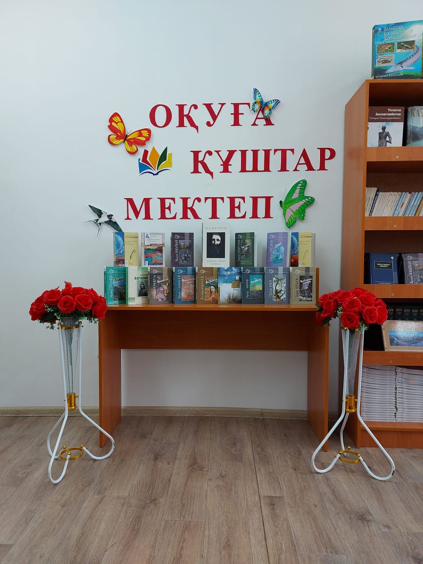 Мектеп кітапханашысы Гүл-Гүл Таубаеваның ұйымдастырумен бұрыш жасақталды.